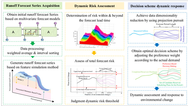 多维需求协同优化是保障水库调度方案实用性的关键。然而,传统方法多基于静态运行环境,未能充分考虑径流预测偏差及运行工况时变性,难以满足变化条件下水库适应性调度需求。为此,团队统筹发电、防洪、供水等综合需求,提出了考虑环境变化的水库汛期水位动态控制多维协同调度方法,通过集成预报径流模拟、风险动态评估、决策响应等策略,有效应对复杂多变环境,提高了综合运行效益,为水库均衡调度决策提供了新型有效方法。