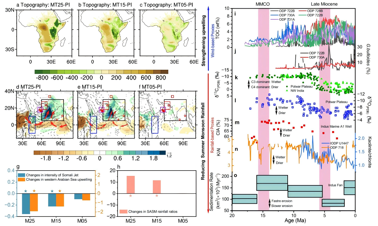 论文信息:Han, Z., Werner, N., Wang, Z. et al. Miocene African topography induces decoupling of Somali Jet and South Asian summer monsoon rainfall. Nat Commun 16, 7172 (2025).