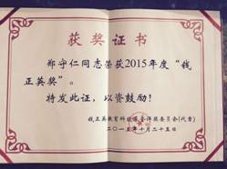郑守仁获奖证书