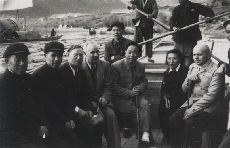 1951年,钱正英与中苏专家在淮河流域考察。